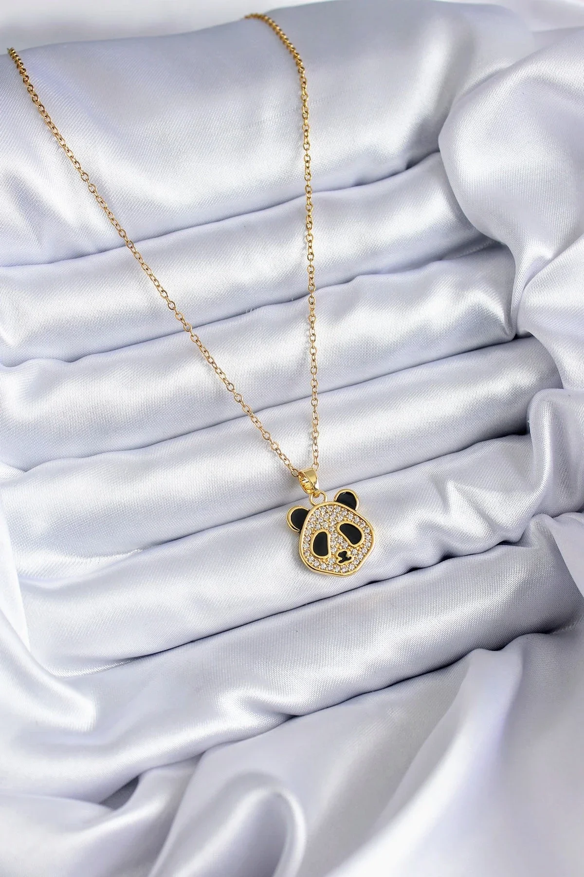 Steel Chain Gold Color Zircon Stone Panda Model Women's Necklace